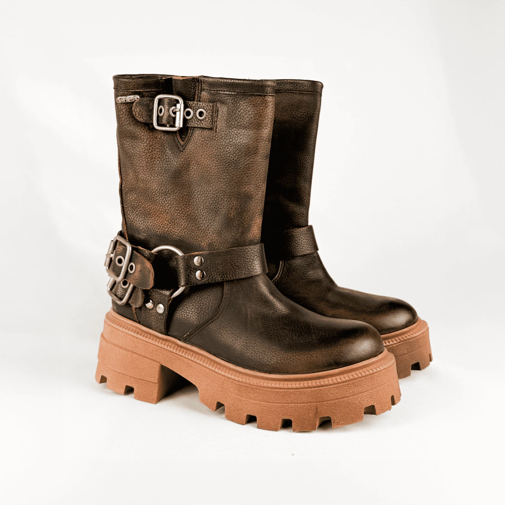 Borcego con detalle de hebillas