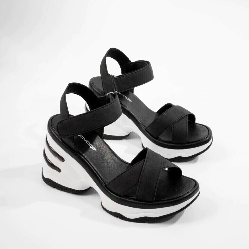 Sandalia con faja cruzada y ajuste en tobillo con velcro. La base tiene una burbuja que le da un estilo más deportivo y urbano. Combinala con todos tus looks.