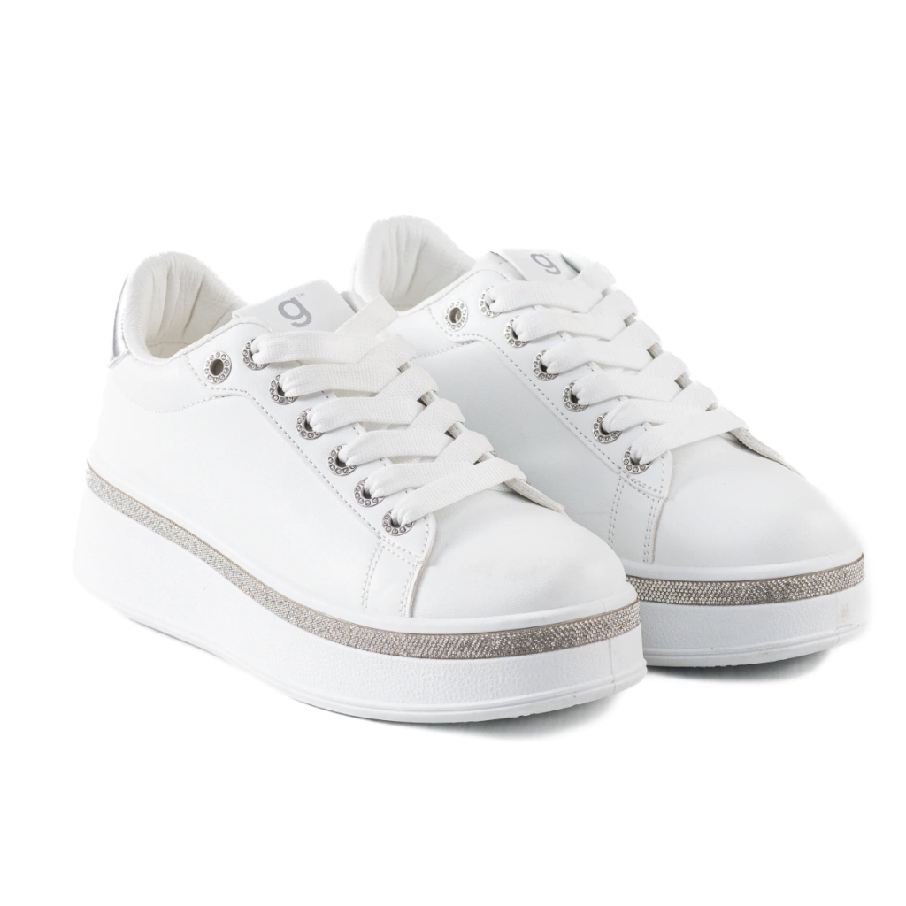 Estas zapatillas blancas son el complemento ideal para brillar con estilo y comodidad. Su diseño incorpora detalles en plateado y brillos que las hacen únicas, perfectas para destacarte en cualquier ocasión. La plantilla soft proporciona una comodidad excepcional en cada paso, ideal para el uso diario.